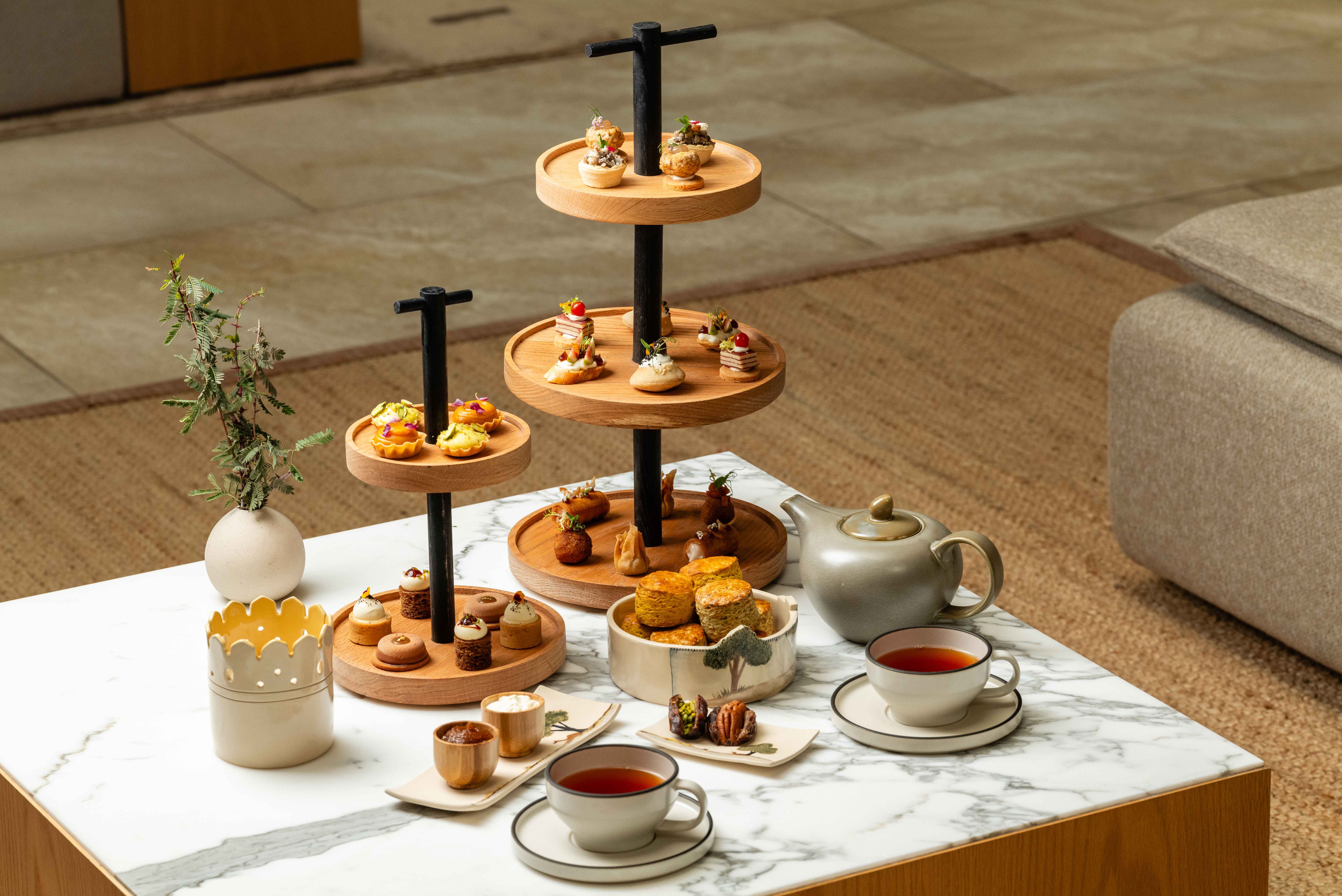 Experience the rich heritage of Emirati cuisine reimagined by Chef Maitha Warshaw at Al Rayeh Lounge. Enjoy a luxurious selection of savory and sweet treats, paired with a bespoke booklet sharing the stories behind each creation.